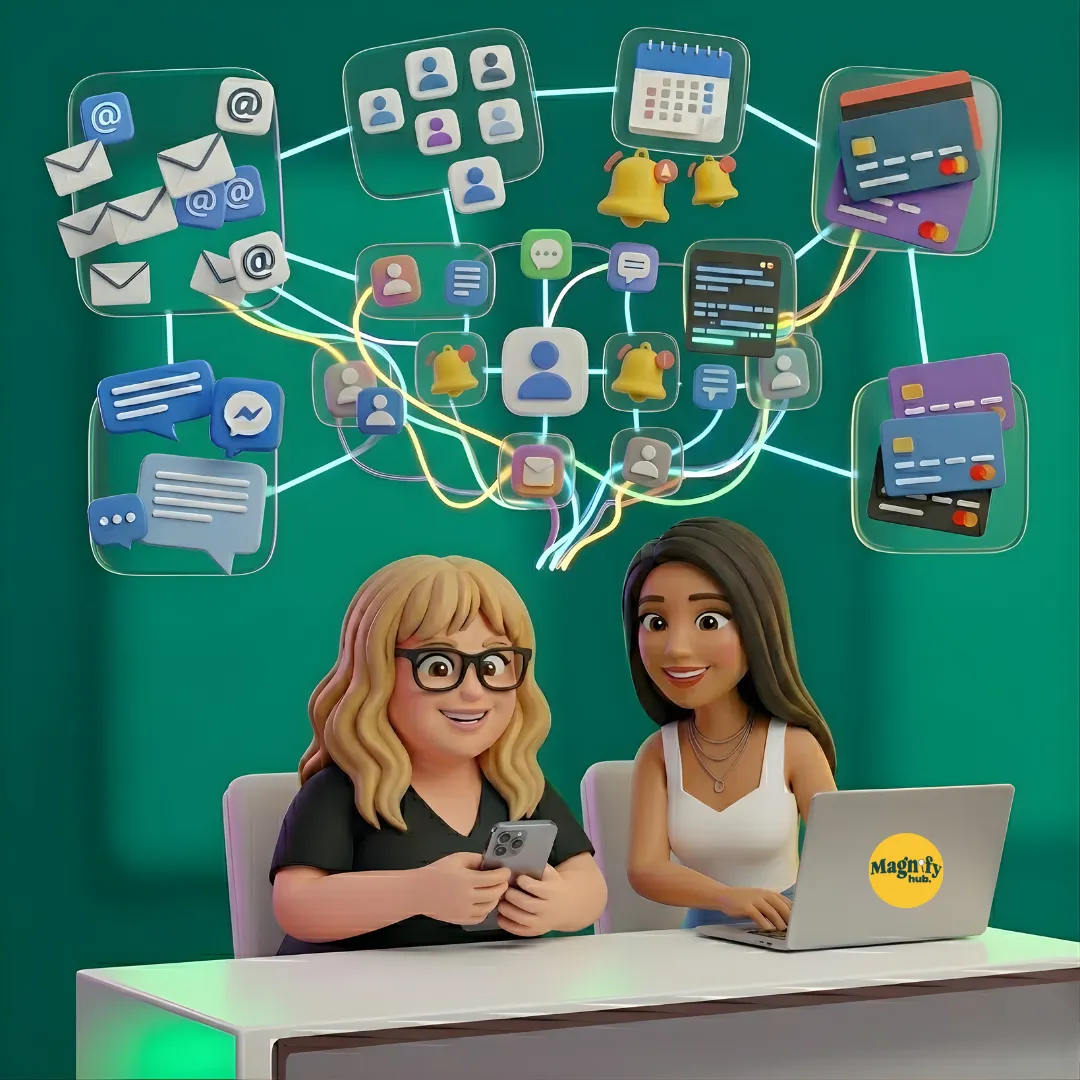 Magnify Hub is designed for everyday business owners. The system uses simple layouts and templates so you can get started without needing technical experience.